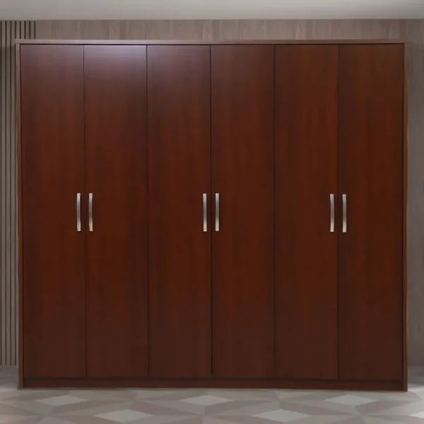 Minimalist 6-Door Dark Brown Polished Wardrobe