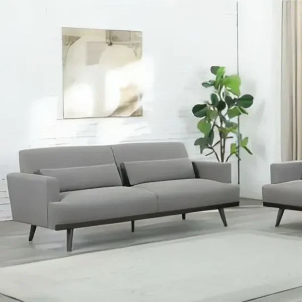 A versatile seating solution for the modern home, this sofa set features a streamlined silhouette and comfortable back cushions. The neutral grey tones and high-ground clearance make it an ideal choice for minimalist interiors seeking both style and easy maintenance.