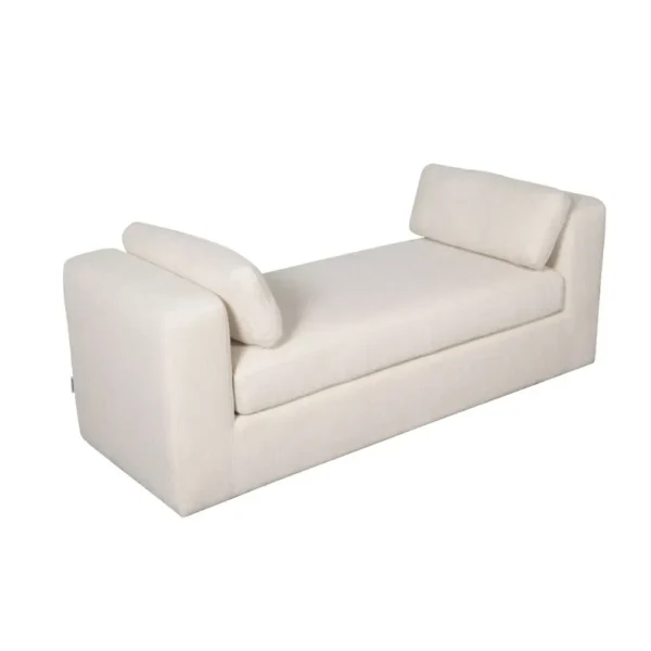 This sophisticated white settee offers a seamless blend of modern minimalism and everyday comfort. Wrapped in high-quality leather rite fabric, it features a low-profile silhouette and two plush bolster pillows for a symmetrical, architectural look that fits perfectly in hallways or at the foot of a bed.