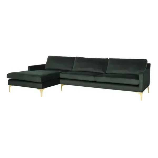 This sophisticated L-shaped sectional is the epitome of modern luxury. Upholstered in premium black velvet, it offers a spacious seating arrangement without looking bulky. The thin gold legs lift the piece off the floor, maintaining an airy and upscale feel in any modern living space.