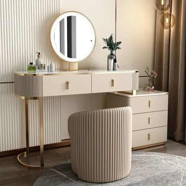 - Integrated mirror and lighting accents