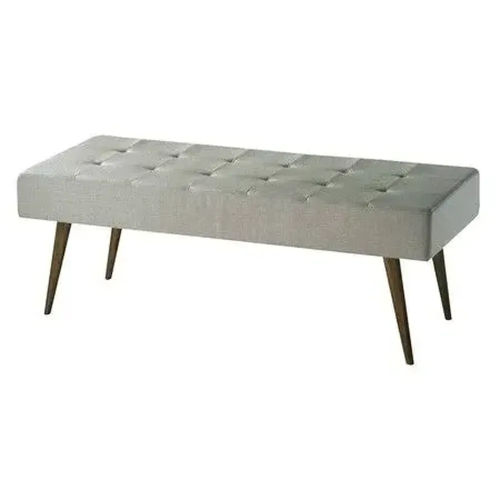 Modern Grey Jute Upholstered Bench with Brown Tapered Legs