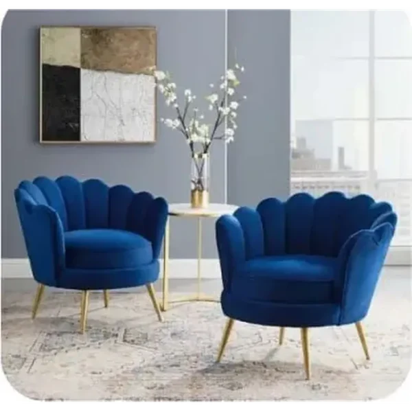 Add a touch of Art Deco glamour to your bedroom or lounge with these stunning scalloped accent chairs. The vibrant blue velvet is soft to the touch, while the gold-toned legs provide a sturdy, modern base. These chairs serve as a bold statement piece for any contemporary space.