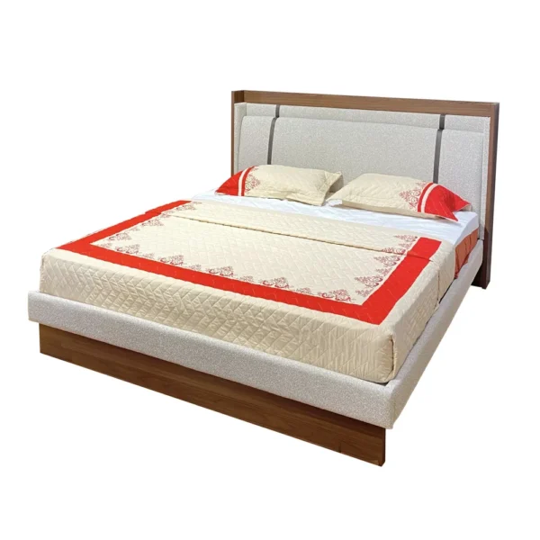 Modern Scandinavian Light Brown Wood Bed with White Jute Padding
