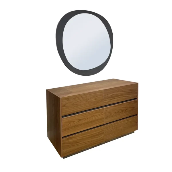 - Matching minimalist dual-drawer nightstands