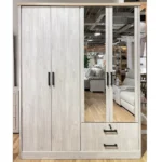 This modern cupboard offers a seamless blend of style and utility. Featuring a three-door design and three side-mounted drawers, it provides ample space for hanging clothes and folded items. The minimalist black finish and simple lines make it a versatile fit for any contemporary bedroom.