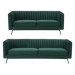 Make a bold statement in your living room with this royal blue velvet sofa set. Inspired by the classic Chesterfield style, it features rolled arms, deep tufting, and silver stud accents for a perfect blend of comfort and drama.