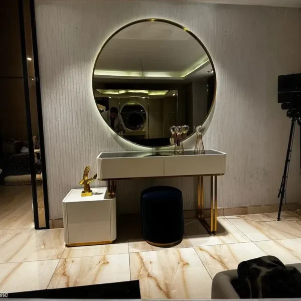 Transform your suite with this Turkish-inspired masterpiece. The headboard features a dramatic radiating “sunburst” upholstery design framed by tall, beveled mirrors that reflect light and create a grand sense of space.