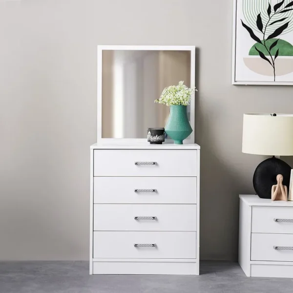 This simple deco bed set brings a bright, fresh atmosphere to any room. The headboard is upholstered in a premium white leather-rite with a classic diamond quilt pattern. Paired with a matching multi-door wardrobe, this set provides a complete, polished look for a modern lifestyle.