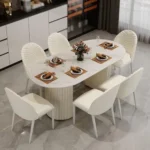 Sophisticated 8-Seater Grey Fabric Dining Set with Black Polished Table
