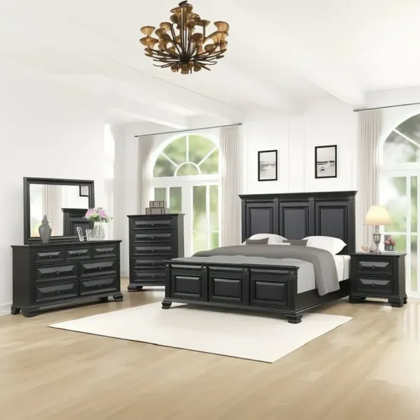 Stately Traditional Black Polished Bedroom Suite with Raised Panel Details