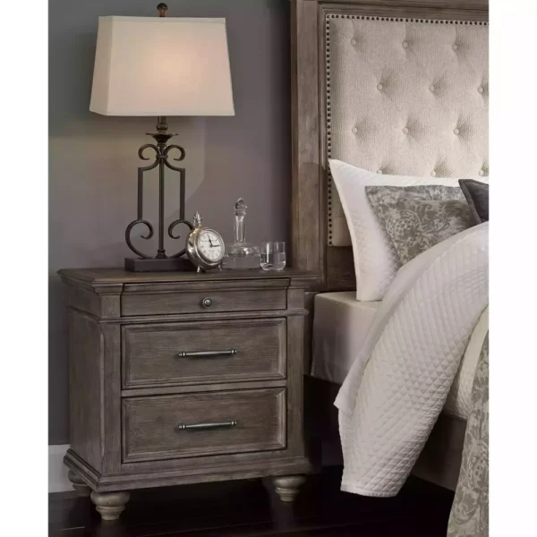 Traditional Luxury Dark Brown Polish Bed with Tufted Leatherette Headboard