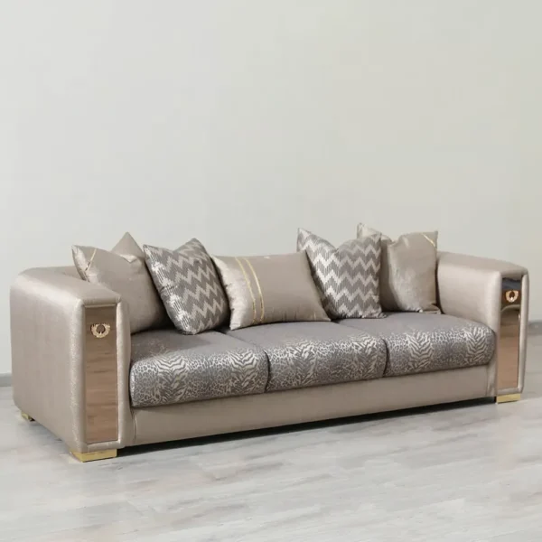 Turkish Style Grey and Gold Fabric Sofa with Animal Print Accents