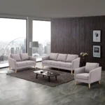 This Turkish-inspired sectional sofa offers a perfect blend of durability and luxury. The white jute upholstery provides a textured feel, while the gold-toned base adds a touch of opulence to your living room.